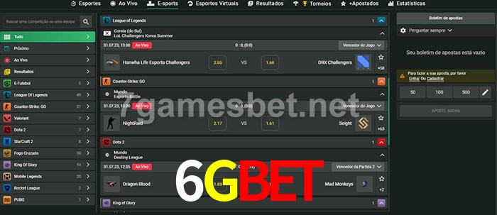 A aposta 6Gbet oferece aos jogadores a experiência mais conveniente de apostas em eSports!
